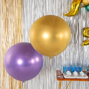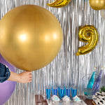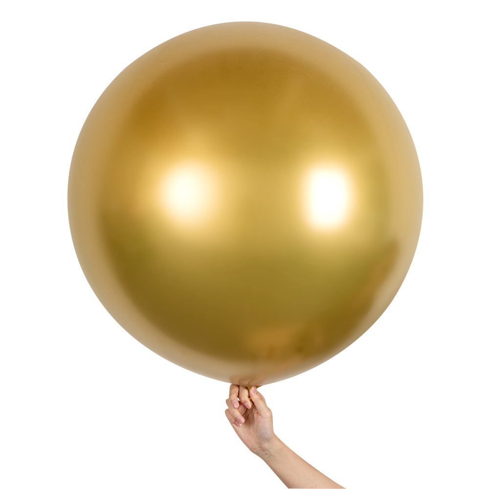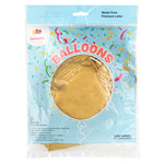 Add a touch of irrefutable glamour to any space with our Balloonify Metallic Gold Latex Balloons. These round balloons are made from premium latex to withstand humidity and heat. The metallic gold finish of these large latex balloons helps create a luxurious look to your hall. These thick balloons can even be used outside and will not discolor the surface. To efficiently fill these latex helium balloons, use any type of pump. Measuring 36 inches in diameter when inflated, these balloons for decor can be filled with air or helium. Shipped deflated in a 10 count box. Electric air balloon pump (SKU: RWP1061) sold separately.