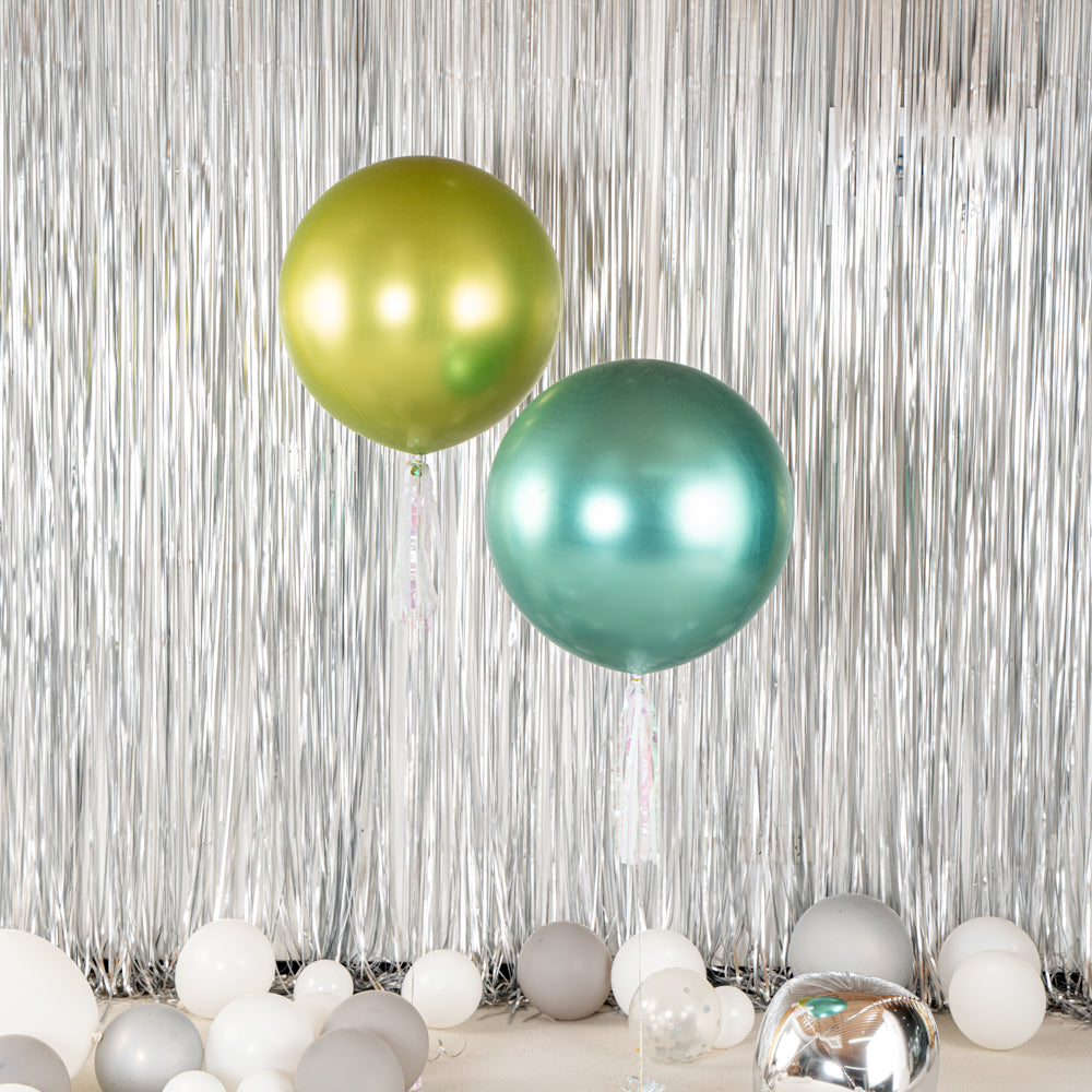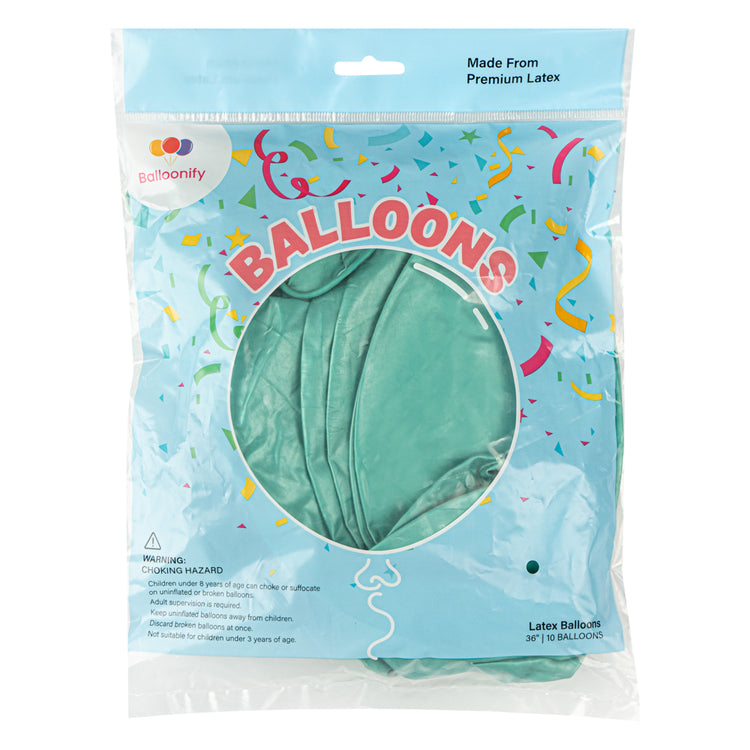Fashion eye-catching design elements with our Balloonify Metallic Green Latex Balloons. Made out of premium latex, these round balloons stretch equally in order not to leave discolored patches. Featuring a metallic green finish, these large latex balloons provide a festive feel to the party. These outdoor latex helium balloons will not pop or burst easily. Inflate these 36-inch latex balloons with an automatic pump to cut down on assembly time. Measuring 36 inches in diameter when inflated, these balloons for decor can be filled with air or helium. Shipped deflated in a 10 count box. Electric air balloon pump (SKU: RWP1061) sold separately.