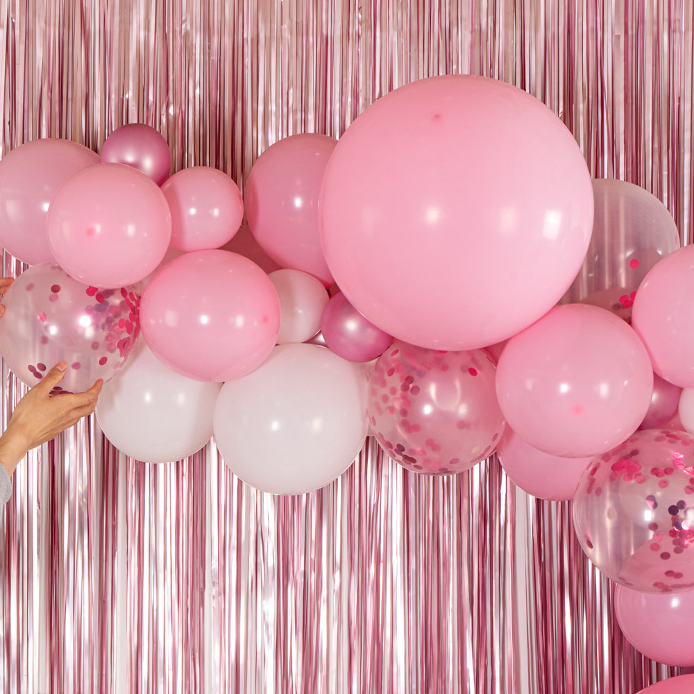 Make decorating fun and exciting with our Balloonify White Balloon Arch / Garland Kit. Made from premium latex, these balloons for arches are durable and don't leave discolored patches when inflated. This balloon arch set includes 104 balloons, 1 balloon strip, and 1 glue dot strip for a quick and simple setup process. With 42 macaron pink balloons, 32 matte white balloons, 20 metallic pink balloons, and 10 confetti pink balloons, this balloon garland arch allows you to create unique decors for your party halls. This birthday balloon arch has confetti balloons that add a sparkly tone to your backdrop. The double-holed balloon strip of this DIY balloon garland kit is 16.4 feet in length and can secure 99 balloons together to create a thickly covered balloon garland. With 100 moistureproof nano glue dots, this balloon garland set allows you to attach small clusters of balloons together effortlessly. In this set, you'll receive 5-inch balloons (40 pieces), 10-inch balloons (30 pieces), 12-inch balloons (30 pieces), 18-inch balloons (4 pieces), 16.4-foot long balloon strip (1 piece), and 1 glue dot strip with 100 dots. All the balloons are shipped flat and deflated. Sold in a box with 42 macaron pink balloons, 32 matte white balloons, 20 metallic pink balloons, 10 confetti pink balloons, 1 balloon strip, and 1 glue dot. Arch not included. Electric air balloon pump (SKU: RWP1061) is available and sold separately.