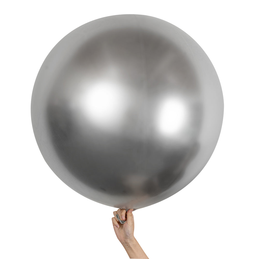 Make an ideal illuminating accent to your party space with our Balloonify Metallic Silver Latex Balloons. Crafted using premium latex, these round balloons will stretch equally while inflating to avoid discolored patches. Designed in a metallic silver finish, these large latex balloons pour elegance onto the decor. Fill these latex helium balloons with a hand pump or any other pump of your choice. Measuring 36 inches in diameter when inflated, these balloons for decor can be filled with air or helium. Shipped deflated in a 10 count box. Electric air balloon pump (SKU: RWP1061) sold separately.