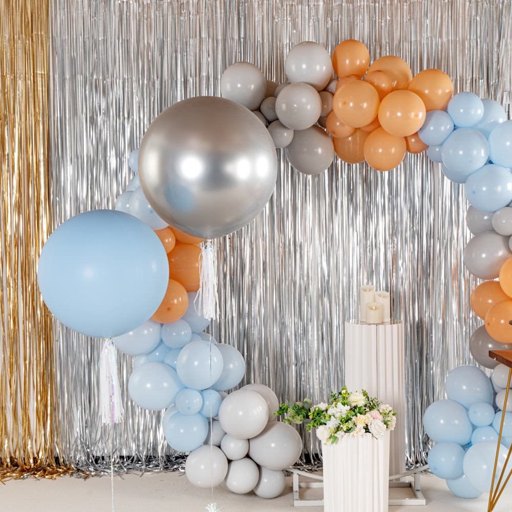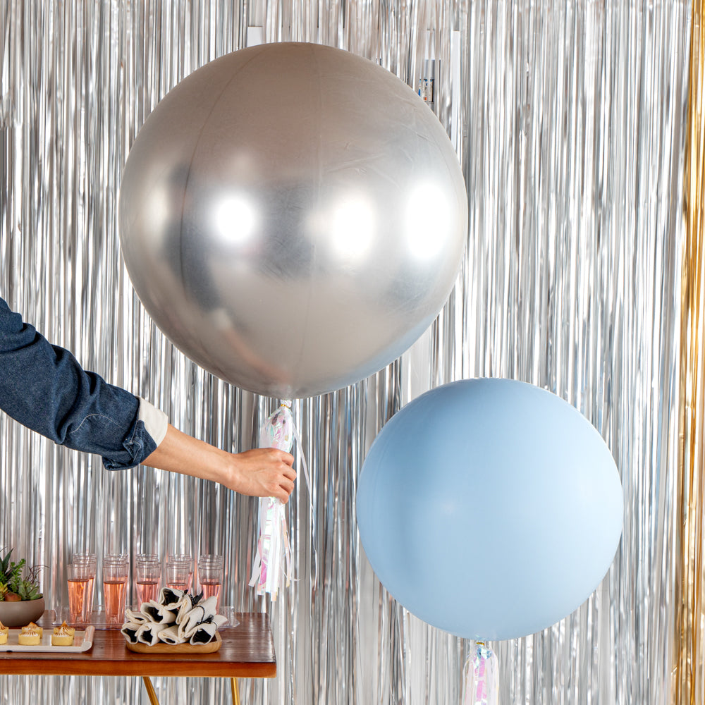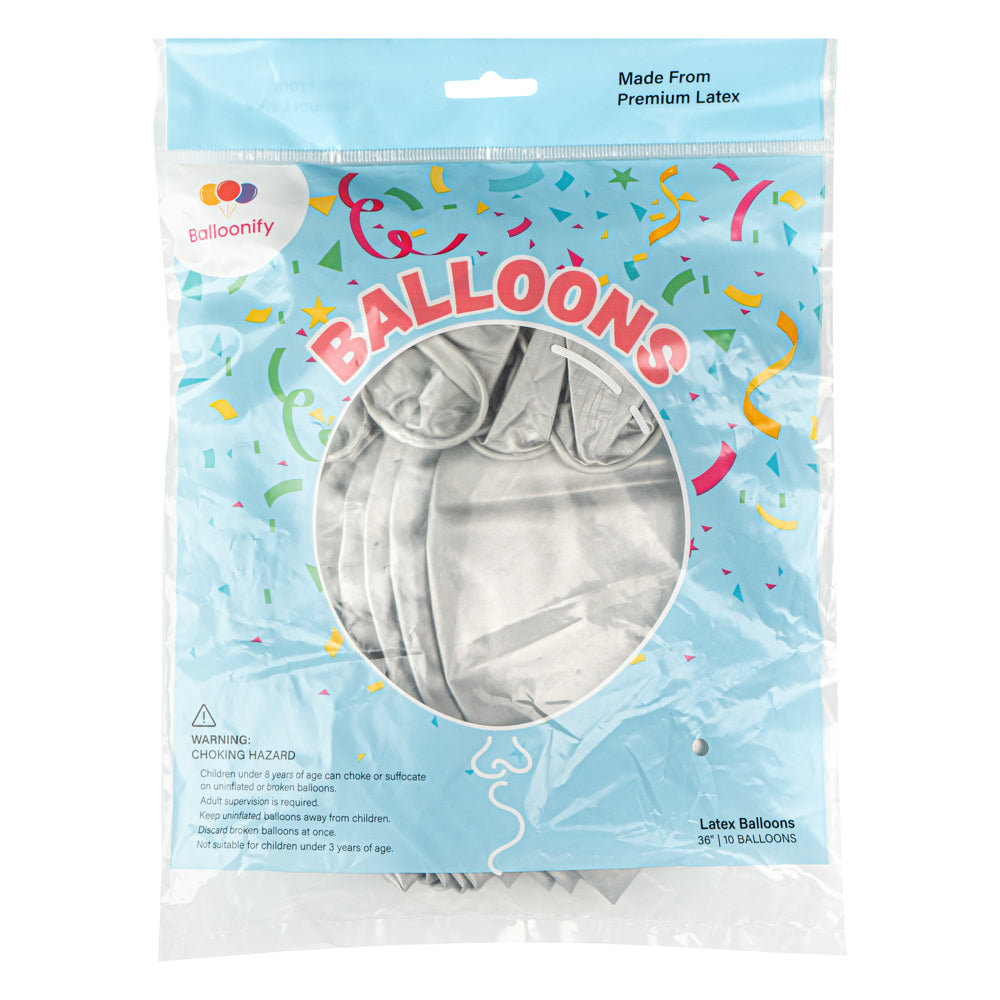 Make an ideal illuminating accent to your party space with our Balloonify Metallic Silver Latex Balloons. Crafted using premium latex, these round balloons will stretch equally while inflating to avoid discolored patches. Designed in a metallic silver finish, these large latex balloons pour elegance onto the decor. Fill these latex helium balloons with a hand pump or any other pump of your choice. Measuring 36 inches in diameter when inflated, these balloons for decor can be filled with air or helium. Shipped deflated in a 10 count box. Electric air balloon pump (SKU: RWP1061) sold separately.