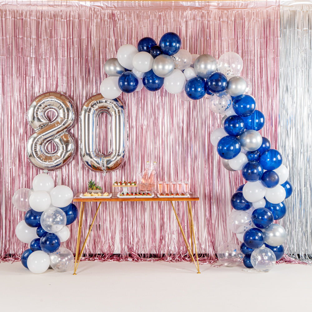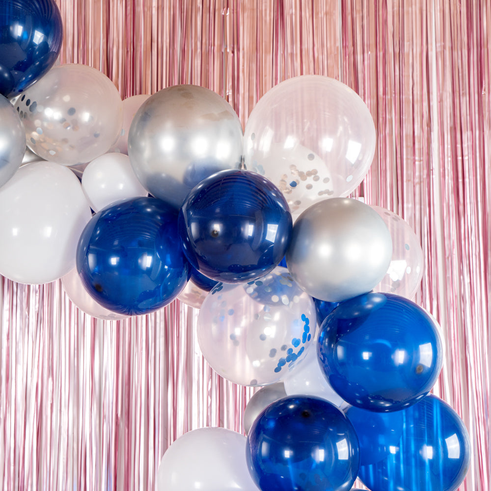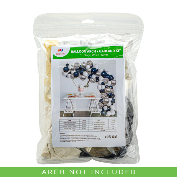 NAVY, WHITE AND SILVER BALLOON ARCH / GARLAND KIT - 122 PIECES