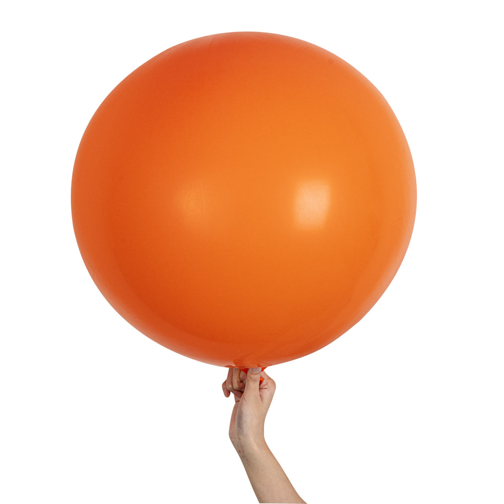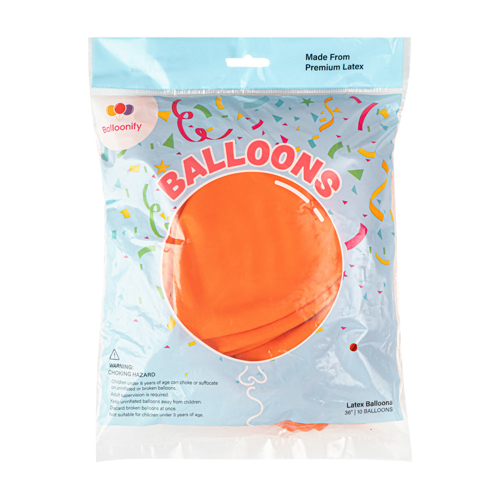 Add a dash of sunshine to your party with our Balloonify Orange Latex Balloon. The latex material of these round balloons makes them durable and strong to use for a long time. With durable materials, these large latex balloons won't leave discolored patches. The orange shade of these 36-inch latex balloons adds a splash of color to your event. Use any type of pump to quickly inflate these latex helium balloons. Measuring 36 inches in diameter when inflated, these balloons for decor can be filled with air or helium. Shipped deflated in a 10 count box. Electric air balloon pump (SKU: RWP1061) sold separately.