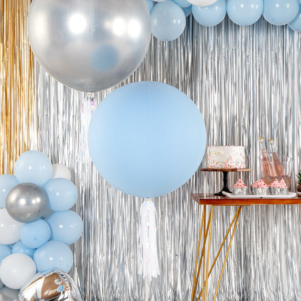 Cherish merry moments with our Balloonify Pastel Blue Latex Balloons. These round balloons are made of premium latex and will not discolor when stretched. Featuring a pastel blue finish, these large latex balloons bring a sense of gentleness to your party room. These thick balloons are strong and will not pop while in use. These latex helium balloons are simple to inflate with either a hand pump or an automatic pump. Measuring 36 inches in diameter when inflated, these balloons for decor can be filled with air or helium. Shipped deflated in a 10 count box. Electric air balloon pump (SKU: RWP1061) sold separately.