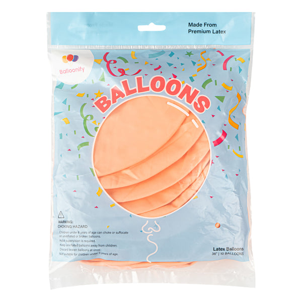 Make a statement in any room with our Balloonify Pastel Orange Latex Balloons. To avoid discoloration during inflation, these round balloons are made of premium latex. Designed with a pastel orange shade, these large latex balloons perfectly invoke an autumnal feeling. These thick balloons are durable and sturdy, and will not pop easily in harsh conditions. Using a hand pump, inflate these 36-inch latex balloons to their maximum capacity. Measuring 36 inches in diameter when inflated, these balloons for decor can be filled with air or helium. Shipped deflated in a 10 count box. Electric air balloon pump (SKU: RWP1061) sold separately.