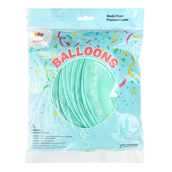 Set up an attractive focal point in your celebratory decor with our Balloonify Pastel Turquoise Latex Balloons. Made of premium latex, these round balloons avoid discoloration patches when stretched. The pastel turquoise shade of these large latex balloons provides a refreshing look to party rooms. These thick balloons are sturdy enough not to pop or burst easily due to their durable design. Make the process easier by inflating these latex helium balloons using an automatic pump. Measuring 36 inches in diameter when inflated, these balloons for decor can be filled with air or helium. Shipped deflated in a 10 count box. Electric air balloon pump (SKU: RWP1061) sold separately.