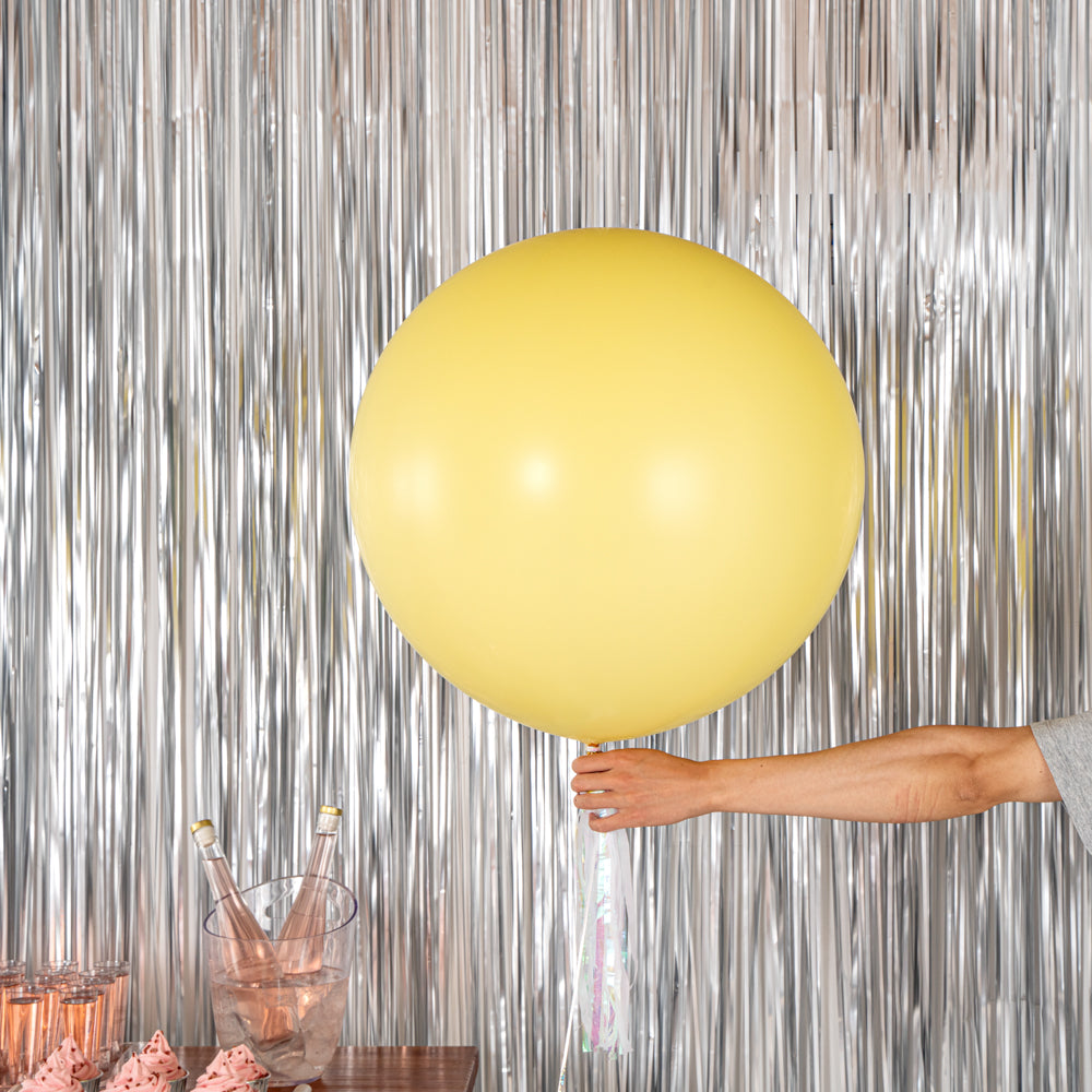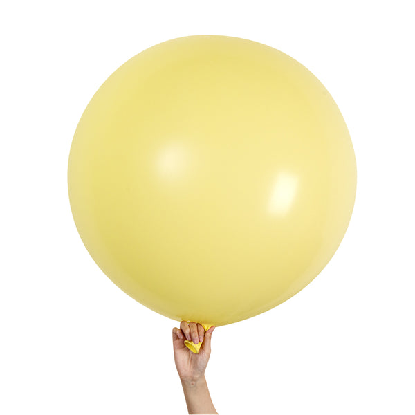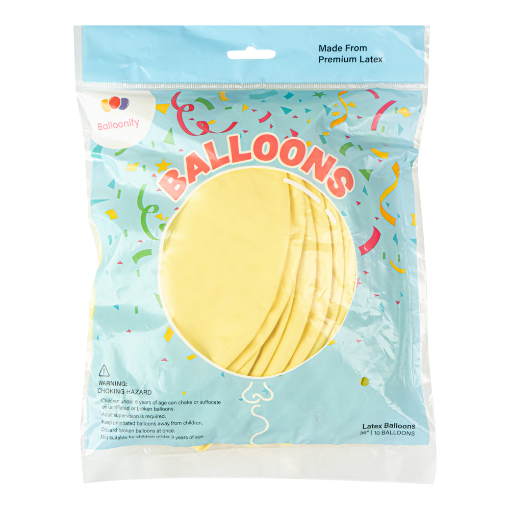 Inject some style into your place with our Balloonify Pastel Yellow Latex Balloons. Crafted using premium latex material, these round balloons will not leave discolored patches once inflated. These large latex balloons feature a pastel yellow shade that spreads energy throughout the room. The thick balloons' sturdy material avoids accidental popping. You can inflate these latex helium balloons using any type of pump. Measuring 36 inches in diameter when inflated, these balloons for decor can be filled with air or helium. Shipped deflated in a 10 count box. Electric air balloon pump (SKU: RWP1061) sold separately.