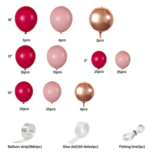 PINK AND ROSE GOLD BALLOON ARCH / GARLAND KIT - 166 PIECES
