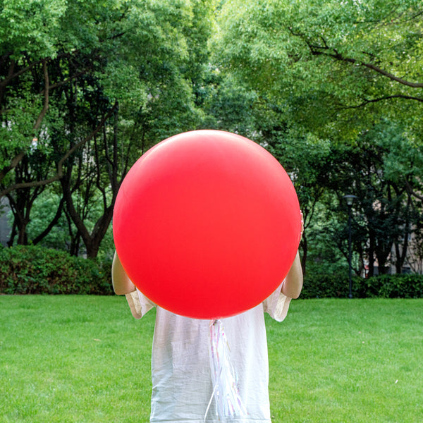 Passionately surprise your significant other on your anniversary with our Balloonify Red Latex Balloons. The red finish of these round balloons gives life to your other decorations. Made using latex, these thick balloons won't pop or discolor easily. These large latex balloons won't let humidity or heat decrease their float life with their durable build. Inflating these latex helium balloons with an automatic pump will avoid the hassle of filling them up the manual way. Measuring 36 inches in diameter when inflated, these balloons for decor can be filled with air or helium. Shipped deflated in a 10 count box. Electric air balloon pump (SKU: RWP1061) sold separately.