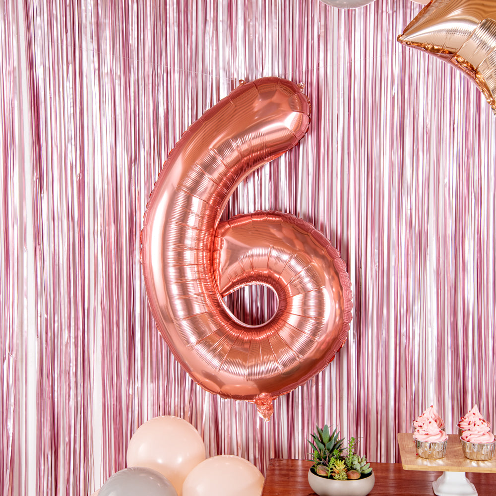 ROSE GOLD MYLAR NUMBER 6 BALLOON