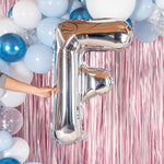 SILVER MYLAR LETTER F BALLOON