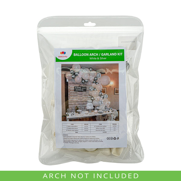 WHITE AND SILVER BALLOON ARCH / GARLAND KIT - 72 PIECES