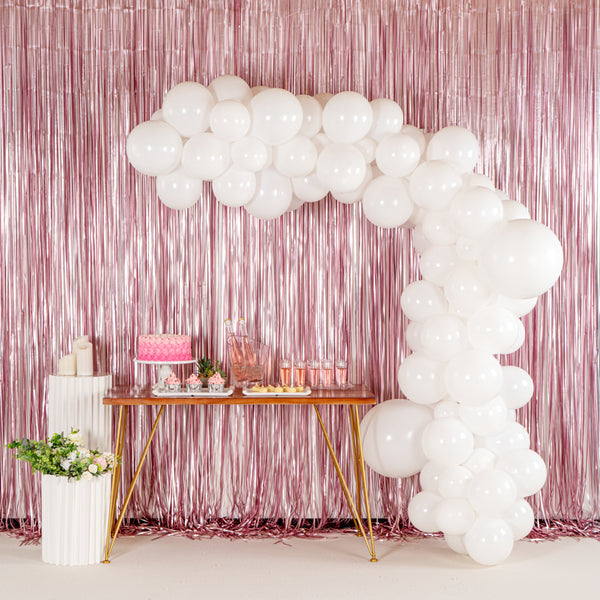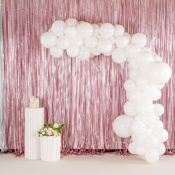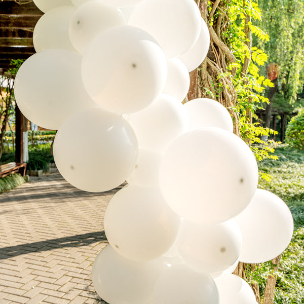Splendidly celebrate every occasion with our Balloonify White Balloon Arch / Garland Kit. This birthday balloon arch has balloons made of durable latex material that stays inflated for 15 days without bursting off. With 102 matte white balloons of different sizes, 1 balloon strip (16.4 feet), 1 glue dot strip (100 dots), and 1 ribbon (32.8 feet), this balloon garland arch allows you to mix and match different balloons to create adorable garlands. The balloon strip of this DIY balloon garland kit has snowman holes that allow you to insert the knot of the inflated balloons and secure them without falling. This balloon garland backdrop kit has moistureproof nano glue dots that bond different balloons firmly without leaving residues. With a white ribbon that blends with the tone of the balloons, this balloon arch kit enhances the beauty of the arch. You will receive a set of 5-inch balloons (20 pieces), 10-inch balloons (60 pieces), 12-inch balloons (20 pieces), 18-inch balloons (2 pieces), 16.4-foot long balloon strip (1 piece), 32.8-foot long ribbon (1 piece), and 1 glue dot strip with 100 dots. All the balloons are shipped flat and deflated. Sold in a box with 102 matte white balloons, 1 balloon strip, 1 ribbon, and 1 glue dot. Arch not included. Electric air balloon pump (SKU: RWP1061) is available and sold separately.