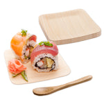 100 SQUARE NATURAL 3.5" BAMBOO VENEER PLATES AND 100 MINI SPOONS