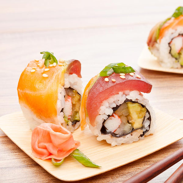 Serve appetizers in style with our Bambuddha Square Natural Bamboo Veneer Plates with Natural Bamboo Mini Spoons. These square appetizer plates and tasting spoons are robustly crafted from organic bamboo and can withstand hot or cold food items without causing breakage or splinters. With a rustic bamboo finish, these serving plates and single-use spoons complement any decor and tablescape. These disposable plates and bamboo spoons are biodegradable and commercially compostable, making them ideal for eco-conscious events and venues. With a lightweight and sturdy construction, these bamboo trays are perfect for handing out miniature fares at parties, events, or occasions. These wooden plates measure 3.5 inches in length by 3.5 inches in width, and the durable wooden spoons measure 3.5 inches in length. Each order includes 100 plates and 100 spoons. These items will only degrade outside of the traditional solid waste stream.