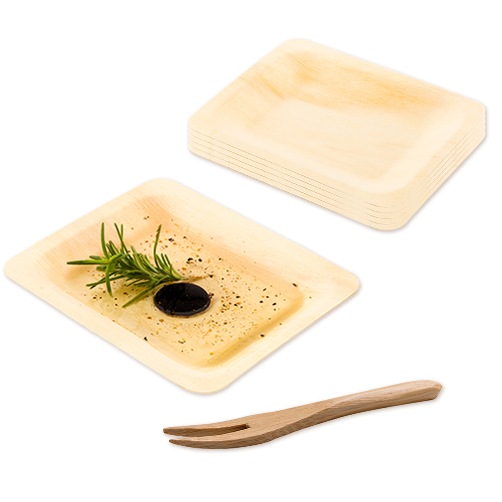 200 RECTANGLE NATURAL 4.75" WOOD PLATES AND 200 MINI FORKS