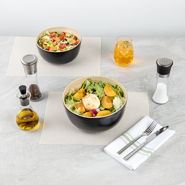 25 OZ ROUND BLACK SPUN BAMBOO MEDIUM SALAD BOWL