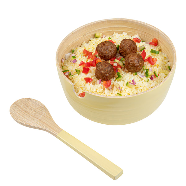 25 OZ ROUND CREAM SPUN BAMBOO SERVING BOWL - WITH SERVING SPOON