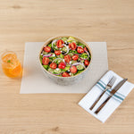 Eliminate messes with the Bambuddha Greaseproof Bamboo Salad Bowl. This bamboo salad bowl features a greaseproof design that allows you to serve a variety of oily and saucy dishes without causing any mess, making it an ideal choice for busy kitchens. Its freezable convenience allows chefs to efficiently store leftover dishes, ensuring that they can easily transition from service to storage. As a bamboo serving bowl, it is suitable for both hot and cold food service, maintaining the integrity of dishes regardless of temperature. With dimensions of 9.45 inches by 9.45 inches and a height of 4.72 inches, this reusable bamboo bowl offers ample space with a capacity of 25.36 ounces, making it perfect for large salads or shared appetizers. The biodegradable and commercially compostable nature of this bowl underscores its commitment to sustainability. Enhance your food presentation and storage with this versatile bamboo bowl. Sold in a 1 count box.