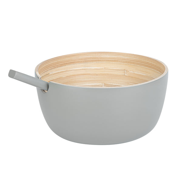 25 OZ ROUND GRAY SPUN BAMBOO SERVING BOWL - WITH SERVING SPOON