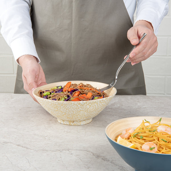 Effortlessly serve a diverse range of dishes with a mess-free experience. The Bambuddha Greaseproof Bamboo Serving Bowl is designed with a greaseproof interior, preventing messes when serving oily or saucy dishes, making it an essential addition to any foodservice operation. This bamboo bowl is both hot and cold friendly, allowing you to present varied menu items without compromising on quality. With a convenient freezable design, this bamboo salad bowl lets you store leftover meals directly in the freezer, maintaining freshness and reducing waste. Its 8.27 inches width and 3.37 inches height make it ideal for generous servings, while the biodegradable and commercially compostable bamboo material aligns with sustainable dining practices. Elevate your service and delight your guests with versatile tableware. Each order includes 1 Bambuddha Greaseproof Bamboo Serving Bowl.