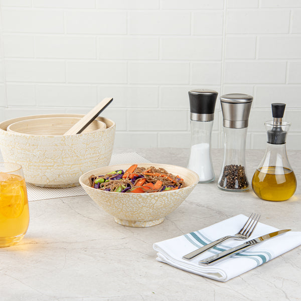 29 OZ ROUND BEIGE SPUN BAMBOO EGGSHELL SERVING BOWL