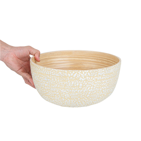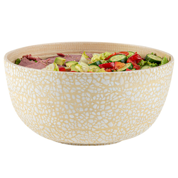 30 OZ ROUND BEIGE SPUN BAMBOO LARGE EGGSHELL SALAD BOWL