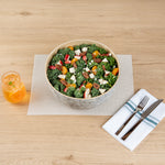 Keep your dishes mess-free with greaseproof protection. The Bambuddha Greaseproof Bamboo Salad Bowl is designed to serve oily and saucy dishes without creating a mess, making it an indispensable tool for busy kitchens. With its freezer-safe capability, this bamboo salad bowl allows you to conveniently store sauces and soups, ensuring your menu remains versatile and efficient. Its 11.02-inch length and width, paired with a height of 5.51 inches, provide ample space for a variety of culinary creations. Crafted from biodegradable bamboo, this bowl is both eco-friendly and commercially compostable, aligning with sustainable practices. Its ability to handle both hot and cold foods offers flexibility for serving diverse menu options, whether it's a chilled pasta salad or a warm grain bowl. Elevate your food presentation and streamline operations with this bamboo serving bowl. Sold in a 1 count box.