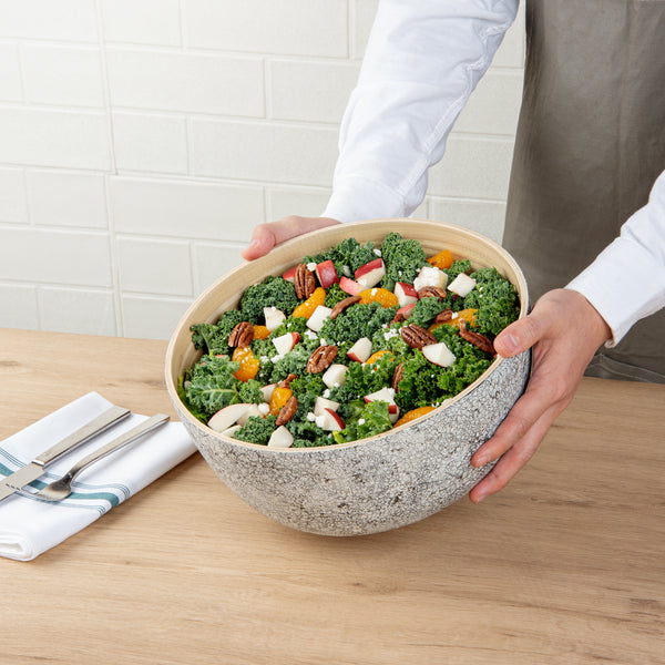 30 OZ ROUND GRAY SPUN BAMBOO LARGE EGGSHELL SALAD BOWL