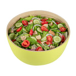 Serve a variety of hot or cold dishes with confidence. The Bambuddha Greaseproof Bamboo Salad Bowl offers a greaseproof design that prevents messes when serving oily meals, making it a must-have for busy kitchens. With its freezer-safe feature, this large bamboo bowl allows you to efficiently store leftover dishes, ensuring optimal use of your food inventory. Its ability to handle both hot and cold temperatures means this biodegradable serving bowl is versatile enough to serve all types of culinary creations, from fresh salads to warm soups. Made from premium bamboo, this bowl not only enhances your presentation with its natural green color but also supports eco-friendly practices by being biodegradable and commercially compostable. Invest in sustainable dining solutions with this bamboo salad bowl and elevate your foodservice operations. Sold in a 1 count box.