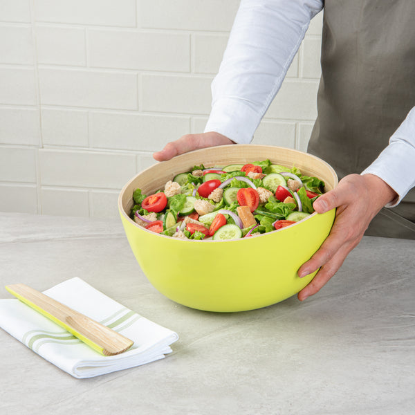30 OZ ROUND GREEN SPUN BAMBOO LARGE SALAD BOWL