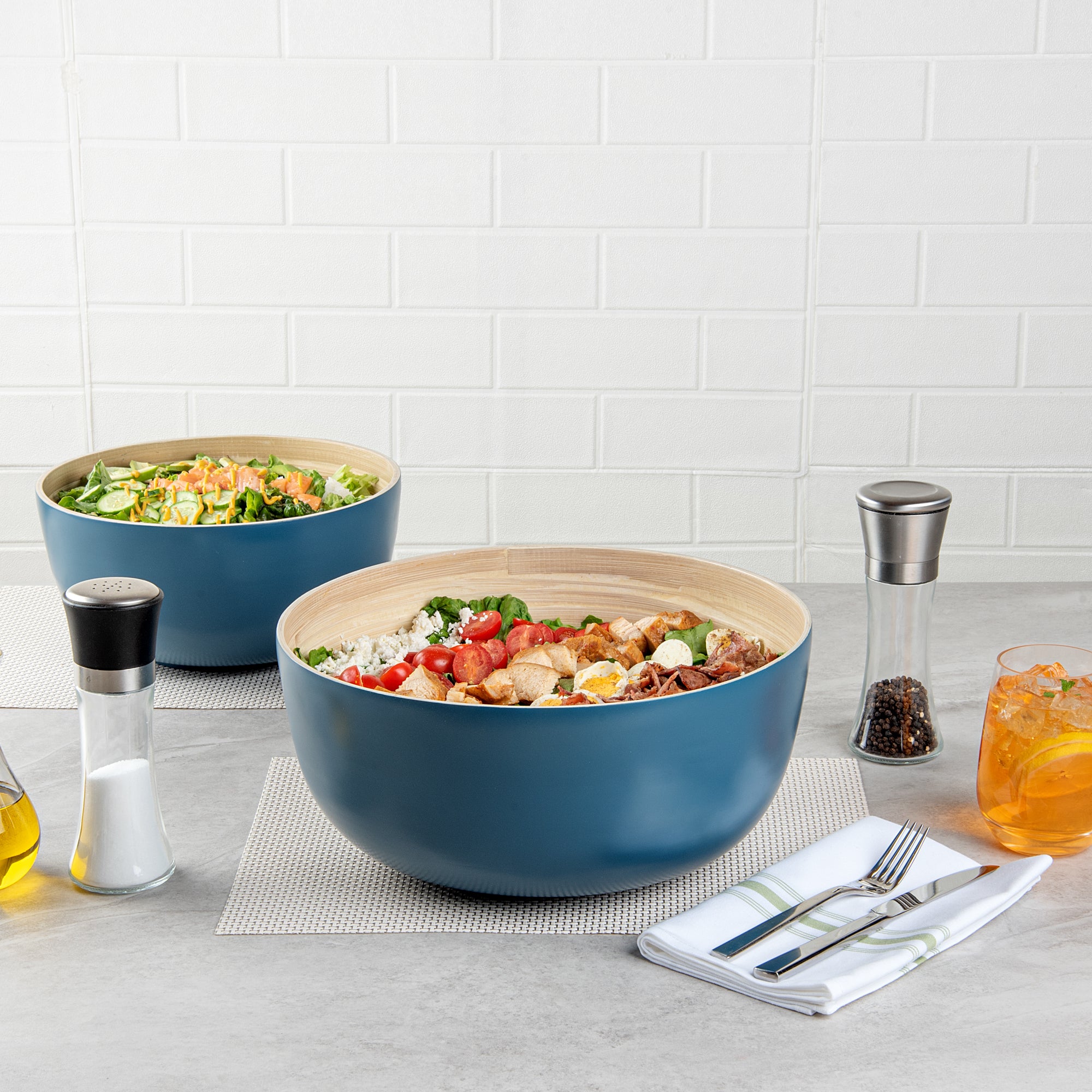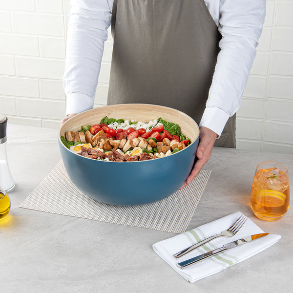 51 OZ ROUND BLUE SPUN BAMBOO EXTRA LARGE SALAD BOWL