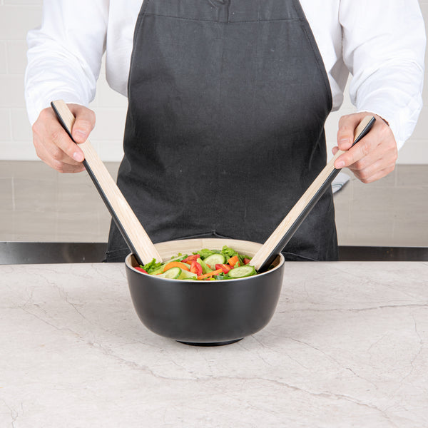 BLACK SPUN BAMBOO 2-PIECE SALAD SERVER SET