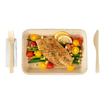 NATURAL BAMBOO DISPOSABLE FORK / KNIFE SET - WHITE NAPKIN, KRAFT POUCH