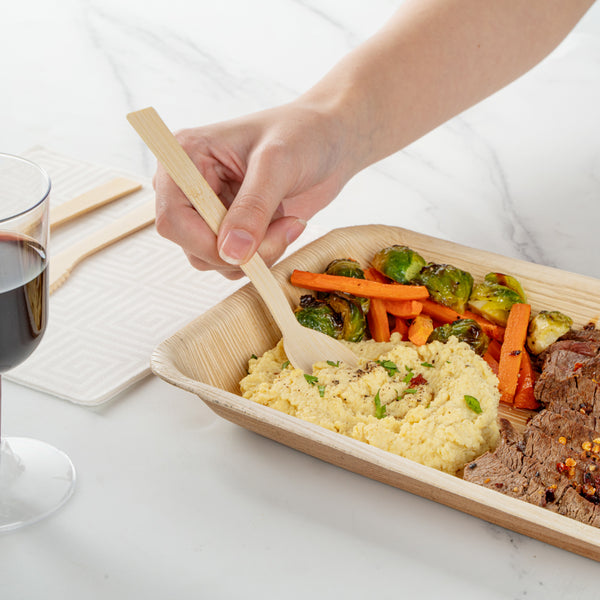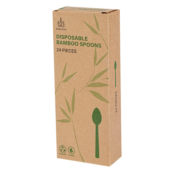 Reduce your own environmental footprint with our Bambuddha Natural Bamboo Disposable Spoons. Built with eco-friendly bamboo, these spoons promote sustainable practices at your food service establishment. Plus, these bamboo spoons are commercially compostable and biodegradable. Made from durable material, these commercially compostable spoons are heat-resistant and won't break when eating hot meals. Constructed with a smooth finish, these disposable spoons do not contain splinters for comfortable handling when eating. The rustic wood grain style of these bamboo spoons makes it versatile for casual or fancy events. These bamboo utensils measure 7 inches in length, ideal for everyday use. Sold in a 24 count box. This item will only degrade outside of the traditional solid waste stream.