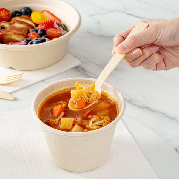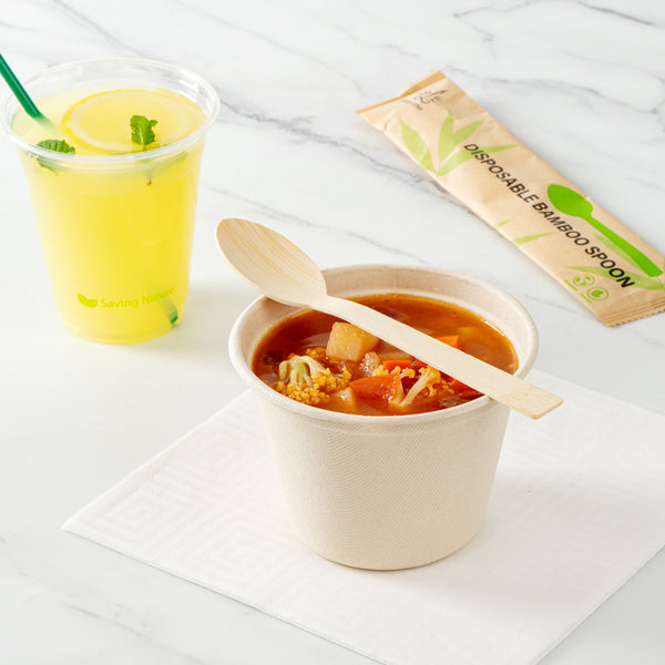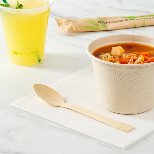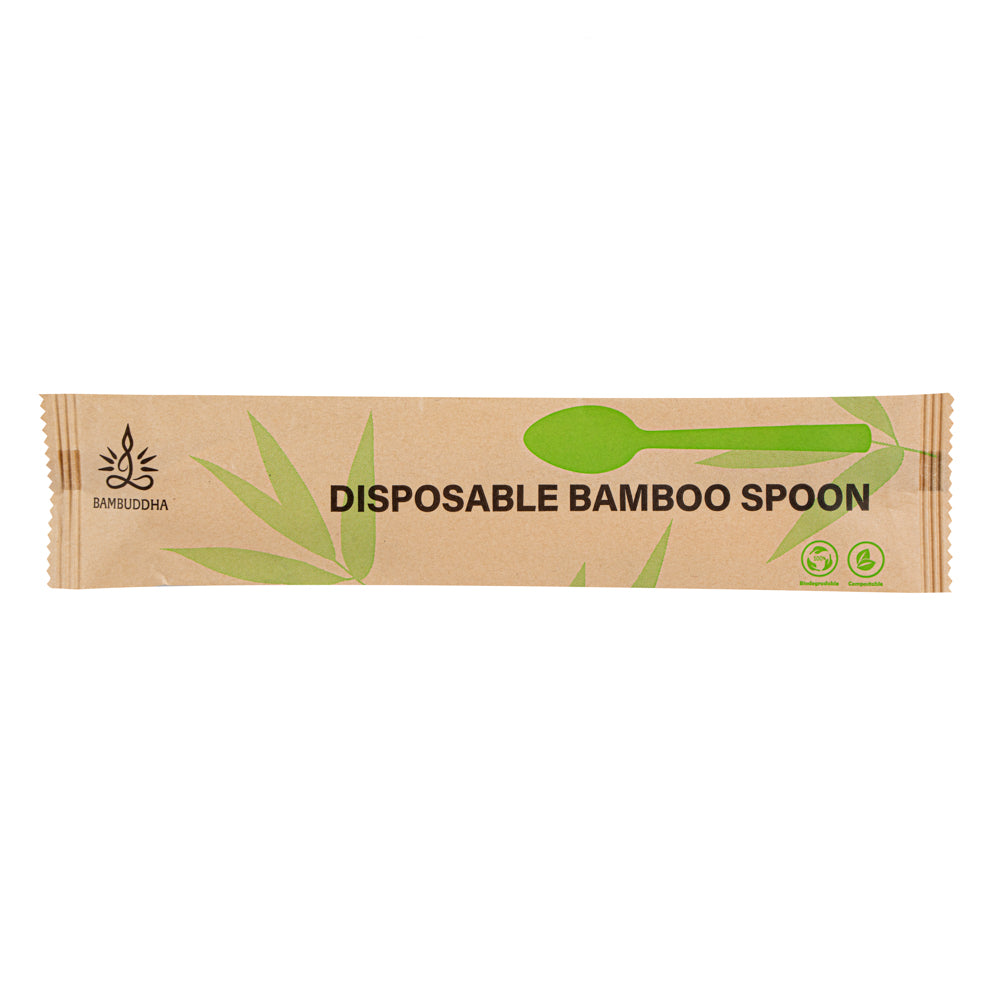 Elevate the look of your meals with our Bambuddha Natural Bamboo Disposable Spoons. Constructed with sustainable bamboo, these disposable spoons provide a nature-friendly alternative to traditional flatware. Made of commercially compostable and biodegradable bamboo, these heavy-duty spoons won't spread harm into the environment. Plus, these bamboo spoons are durable to withstand hot and cold foods without breaking. These bamboo spoons have a smooth finish without splinters to provide guests with a comfortable eating experience. For a hygienic way to enjoy meals, these bamboo spoons come individually packed in a kraft paper pouch. To complement casual and fancy events, these commercially compostable spoons have a unique, wood grain finish. These disposable serving utensils measure 7 long. Sold in a 1000 count box. This item will only degrade outside of the traditional solid waste stream.