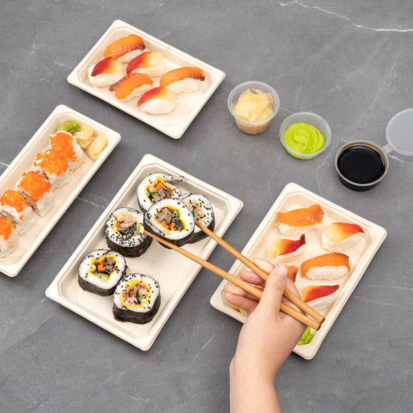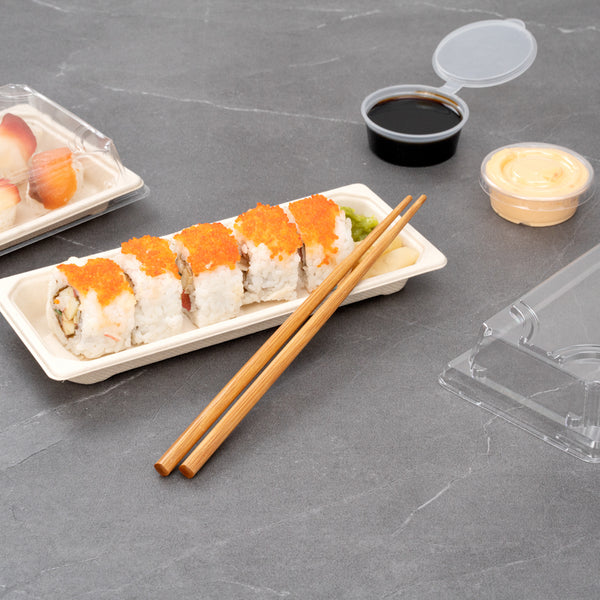 Serve your Asian fare alongside our Bambuddha Natural Bamboo Modern Chopsticks to give your dishes the perfect finishing touch. Made from bamboo, these biodegradable bamboo chopsticks are perfect for accompanying plates of wet or dry foods like bowls of spicy stir-fried soba noodles or freshly sliced salmon sashimi. Each disposable chopstick set is individually wrapped in plastic to keep it untouched and clean at your establishment. Crafted from bamboo, these traditional chopsticks are strong and durable and don't break while in use. These sturdy chopsticks are suitable for both hot and cold foods. Featuring a smooth finish, these commercially compostable long chopsticks measure 9 inches long and are designed to be easy to hold and fit comfortably in your hands. Sold in a 100 count box.