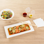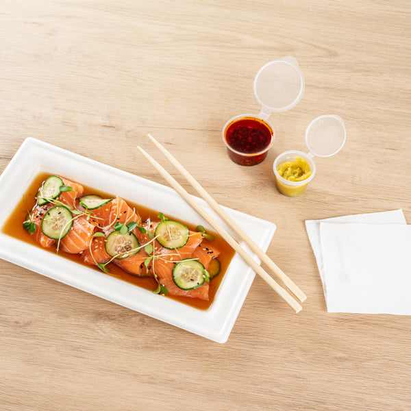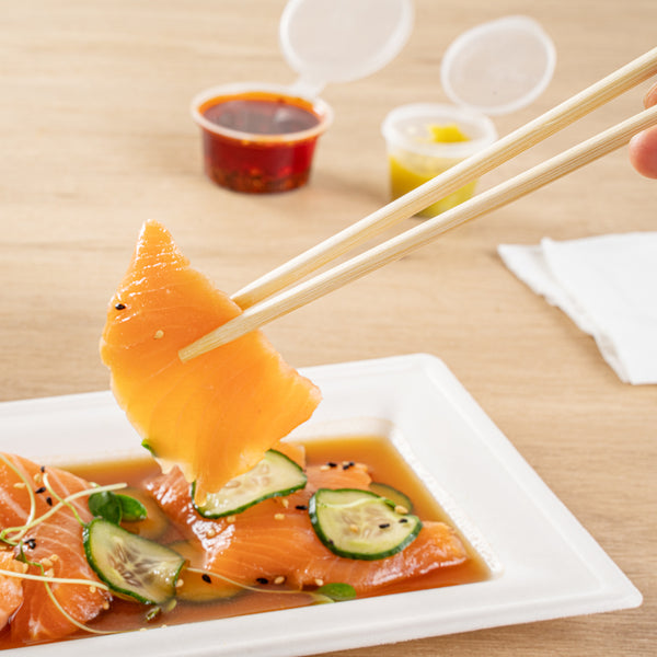 Relish your delectable sushi with ease using our Bambuddha Natural Bamboo Twin Chopsticks. These chopsticks are encased in a paper sleeve to ensure they remain unaffected until they are delivered to your guests for a clean dining experience. Crafted from durable bamboo, these twin chopsticks are splinter-free, providing a comfortable dining experience. These attached chopsticks can withstand temperatures of up to 752F and are suitable for all kinds of Asian foods. The pointy ends of these disposable chopsticks easily pick up food. These premium chopsticks are polished with food-grade talcum powder to create a smooth, non-slip exterior that securely holds food without dropping. To minimize your ecological footprint, these heavy-duty chopsticks are biodegradable and recyclable. Measuring 9 inches in length, these high-quality bamboo chopsticks easily maneuver in deep bowls, slippery noodles, and tough meat. Shipped in a 100 count box. This item will only degrade outside of the traditional solid waste stream.