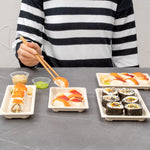 Serve food with premium chopsticks using our Bambuddha Natural Bamboo Twisted Chopsticks. With a twisted design, these premium biodegradable chopsticks are designed to comfortably fit in your hands, making picking up and holding food simple. Made with bamboo, these disposable bamboo chopsticks can be used for hot or cold foods. These premium bamboo chopsticks are sustainable for any foodservice establishment. Conveniently disposable, these commercially compostable twisted chopsticks can be discarded without cleaning or drying. Each pair of these long chopsticks is wrapped in plastic to keep them untouched and maintain cleanliness standards. Measuring 9 inches in length, these sustainable bamboo chopsticks are an ideal option for Pan-Asian restaurants. Sold in a 100 count box.