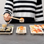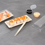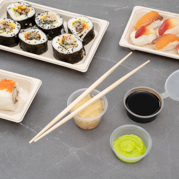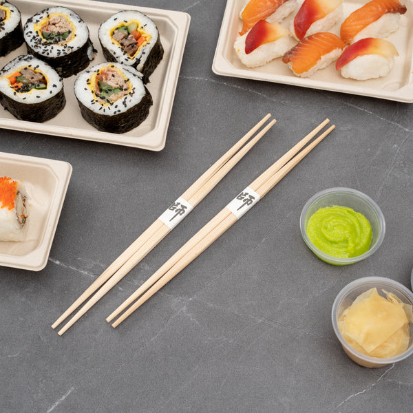 - Paper band keeps chopsticks together for take out or delivery services