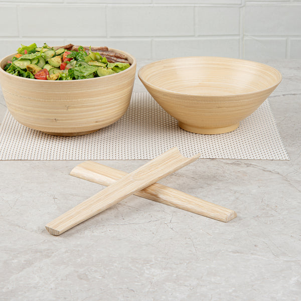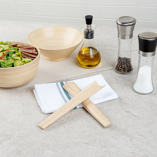 NATURAL SPUN BAMBOO 2-PIECE SALAD SERVER SET