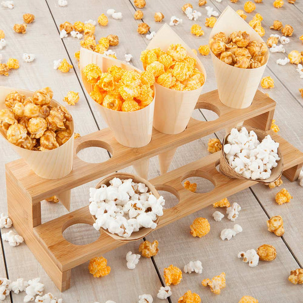 RECTANGLE NATURAL BAMBOO CONE STAND - 12 SLOTS, MULTI-LEVEL