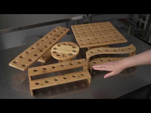 - Multi-level design elevates the look of appetizer or dessert displays