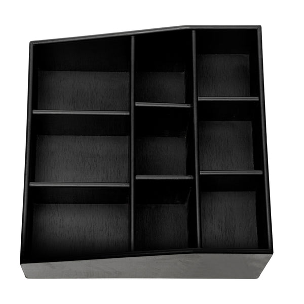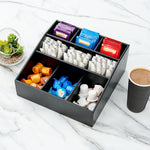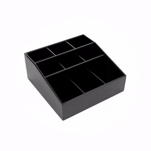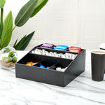 SQUARE BLACK BAMBOO CONDIMENT ORGANIZER - 9 COMPARTMENTS