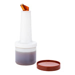 Easily store and pour juices, sauces, and oils with our Bar Lux Quick Pour Storage Container Bottle with Brown Spout and Lid. Featuring 2 interchangeable lids, this handy 0.5-quart salad dressing container comes with a spout lid great for easily pouring the product of your choice and once it's time to store, simply screw off the base of the container that doubles as an airtight lid for convenient storing all in one. With coordinating brown lids, this plastic pour bottle enables your establishment to create a color-coded system to easily identify products and avoid cross-contamination. This versatile oil pourer is ideal for containing fresh juices and simple syrups behind the bar or for serving tasty salad dressings and savory sauces at a restaurant. Measuring 3.5 inches long by 10.2 inches tall, this plastic bottle with lids ships in a 1 count box.