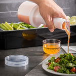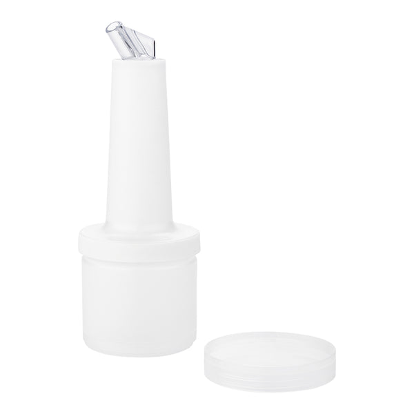 Efficiently store and pour liquids in the same container with our Bar Lux Quick Pour Storage Container Bottle with Clear Spout and Lid. When it's time to add simple syrup to flavorful cocktails, use the spout lid and at the end of the night, easily twist off the base of the container that doubles as an airtight lid for convenient storage. Constructed from plastic, this salad dressing holder is great for holding syrups and mixes at your hotel's bar or for containing savory sauces and cooking oil at your restaurant. Ideal for bars service and food establishments, this 0.5-quart cooking oil pourer features straight walls for quick and easy cleaning. This durable plastic bottle container measures 3.5 inches long by 10.2 inches tall and ship in a 1 count box.