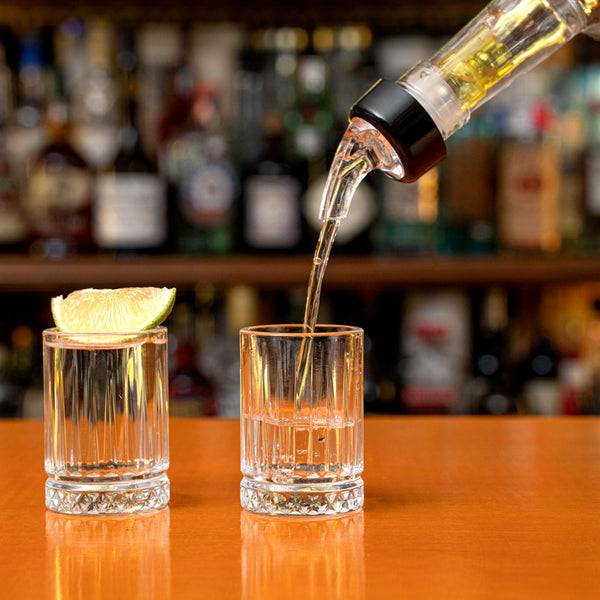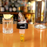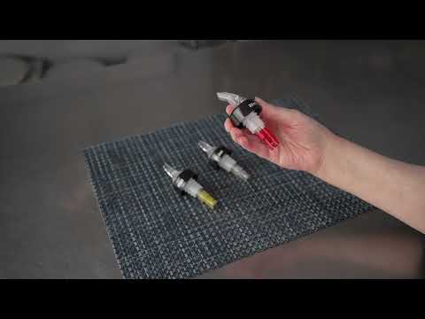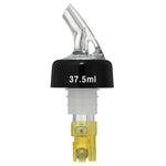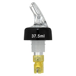 Pour spirits using our Bar Lux 1.5-ounce Yellow Plastic Measured Liquor Pourers. These drink pourers have a clear spout and tight-fitting black collar that keeps liquors from spilling out while serving guests. Ideal for accurately measuring beverages while serving, these liquor pourers are made with ball bearings that allow you to smoothly pour spirits without creating messes. These liquor spouts are designed with a yellow tail so employees can quickly identify and differentiate alcohols or spout sizes. Made from premium plastic, these liquor pourers are crack-resistant to maintain their stylish look during frequent use at your bar. Intended for use with spirits with an ABV of 40% or more, these liquor spouts allow you to pour up to 1.5 ounces of spirits at a time. When used with liqueurs, syrups, or juices, the measurements may not be accurate. To ensure smooth pouring, these spirit pourers should be shaken before use and poured at an angle greater than 45 degrees. Designed to fit standard-sized liquor bottles, these drink pourers measure 1.38 inches in diameter by 3.74 inches in height. Shipped in a 50 count box.