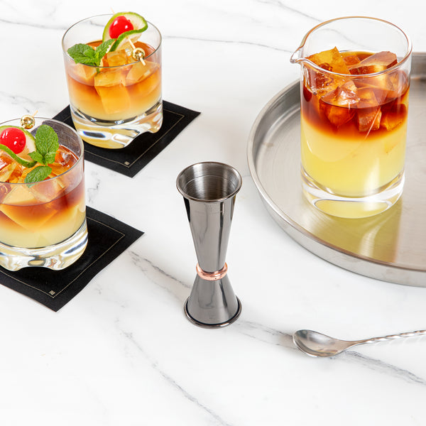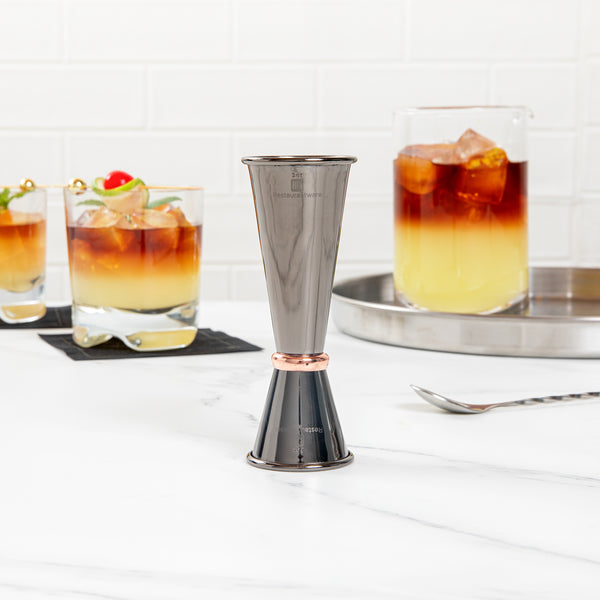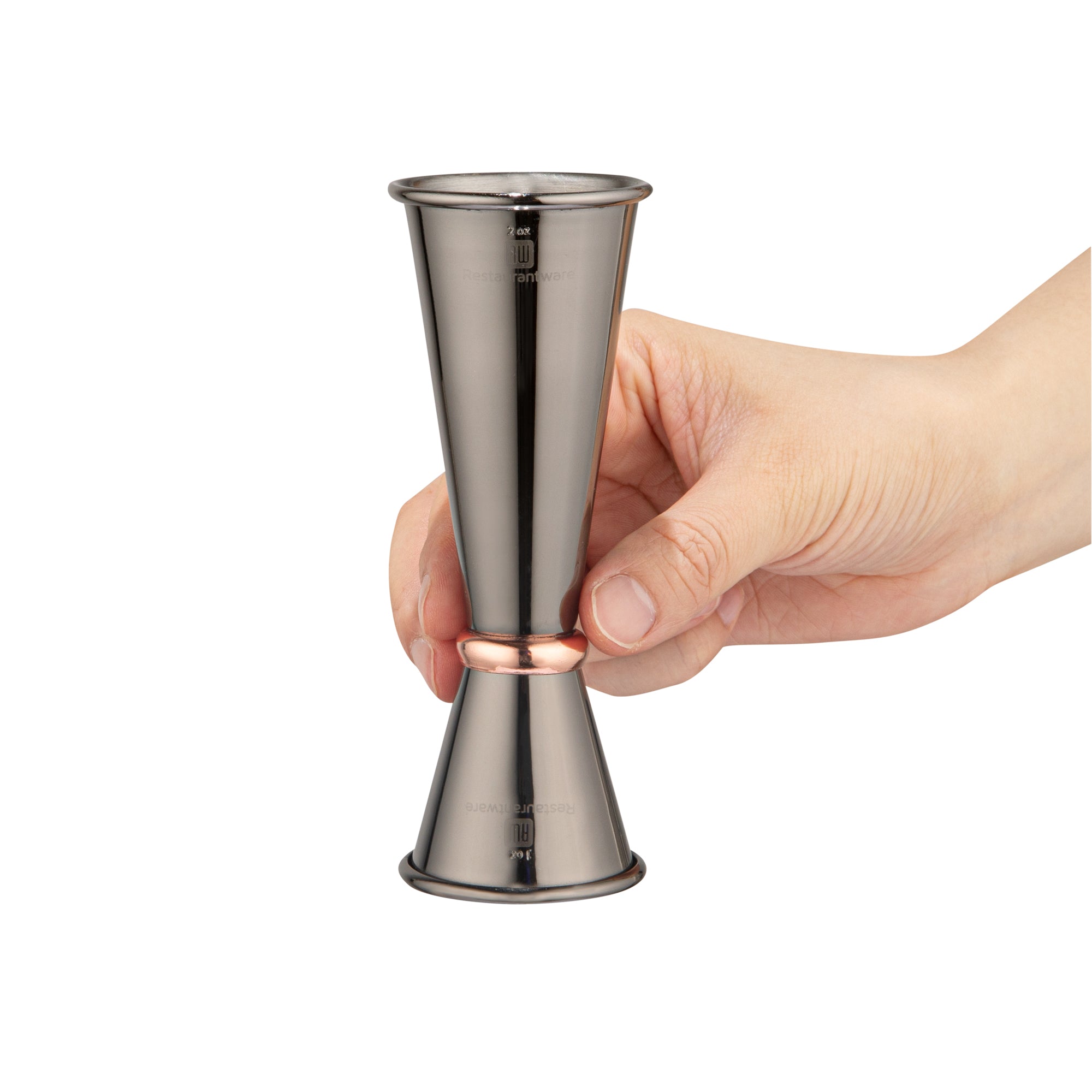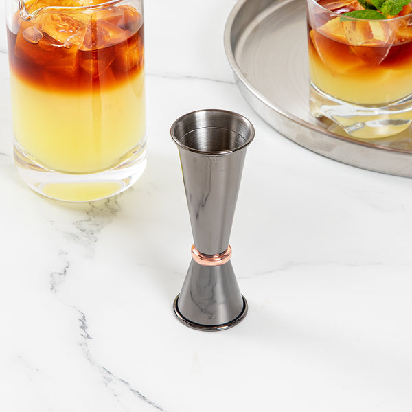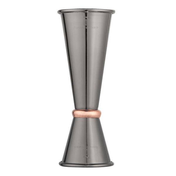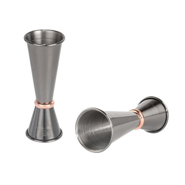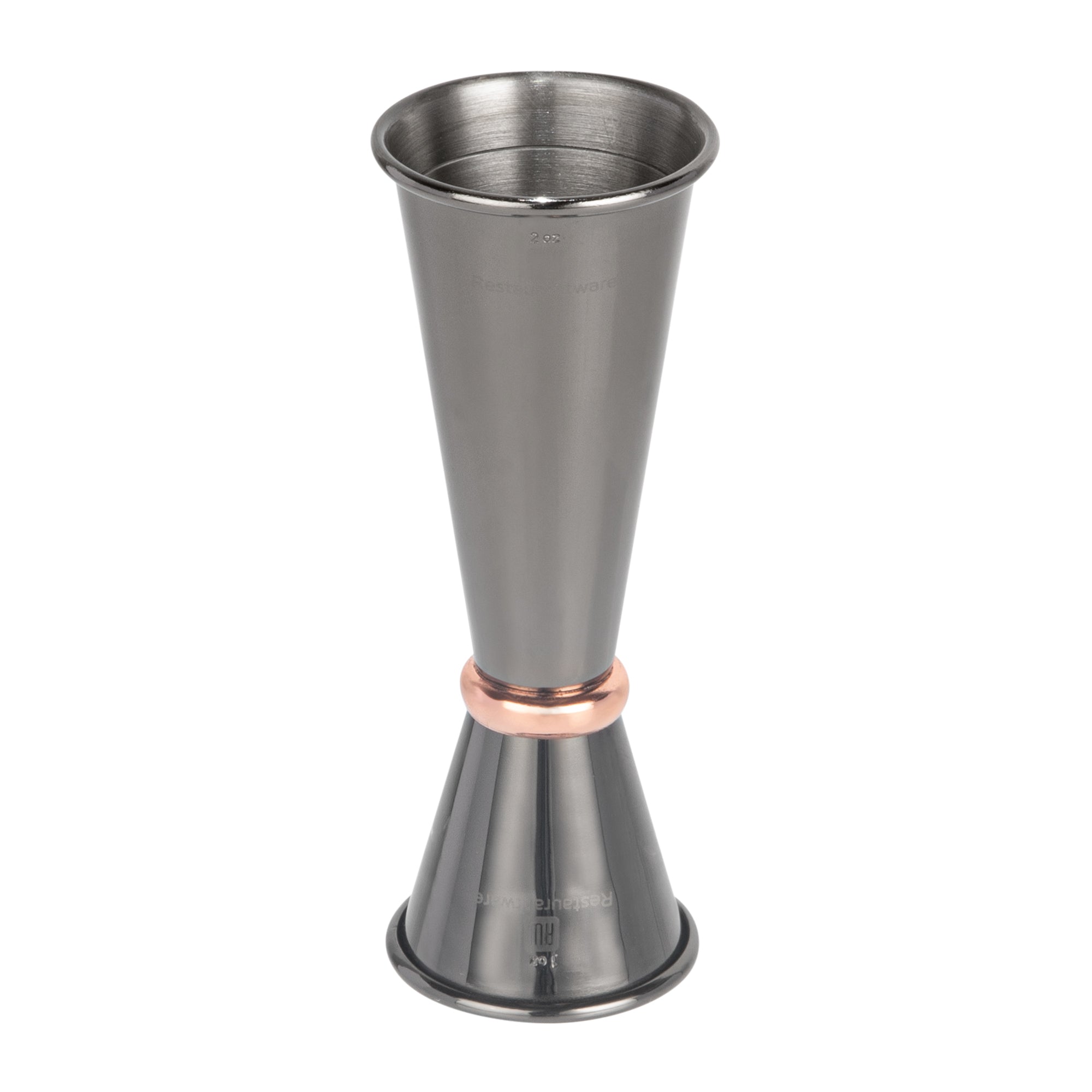 1 OZ/2 OZ BLACK-PLATED STAINLESS STEEL JIGGER - COPPER-PLATED RING