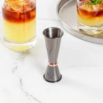 - Double-sided design conveniently measures 1 or 2 ounces of liquid