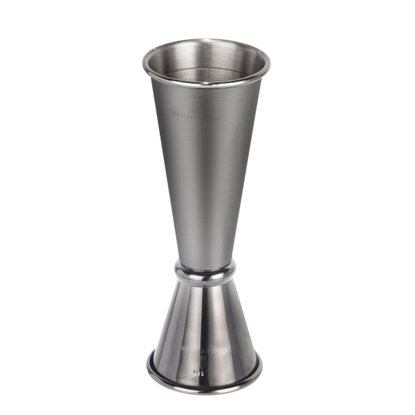 - Double-sided design conveniently measures 1 or 2 ounces of liquid